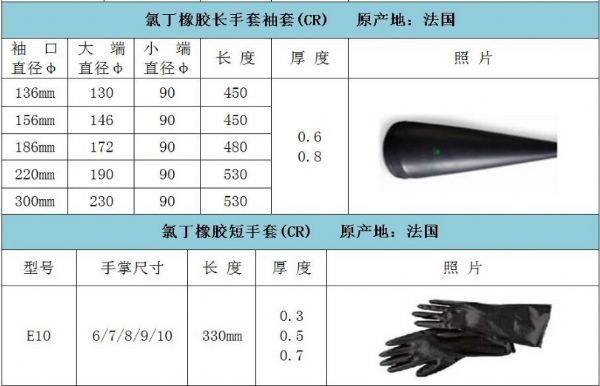 氯丁手套原產(chǎn)地法國,主要用于核電,防御,生物,半導(dǎo)體和制造業(yè)中的隔離器和手套箱的操作。常配套手套箱、操作箱、干燥箱、隔離器、灌裝生產(chǎn)線等使用??膳涮走M(jìn)口手套箱,如:德國布勞恩手套箱、美國VAC手套箱、韓國高麗技研手套箱;各類國產(chǎn)手套箱等。